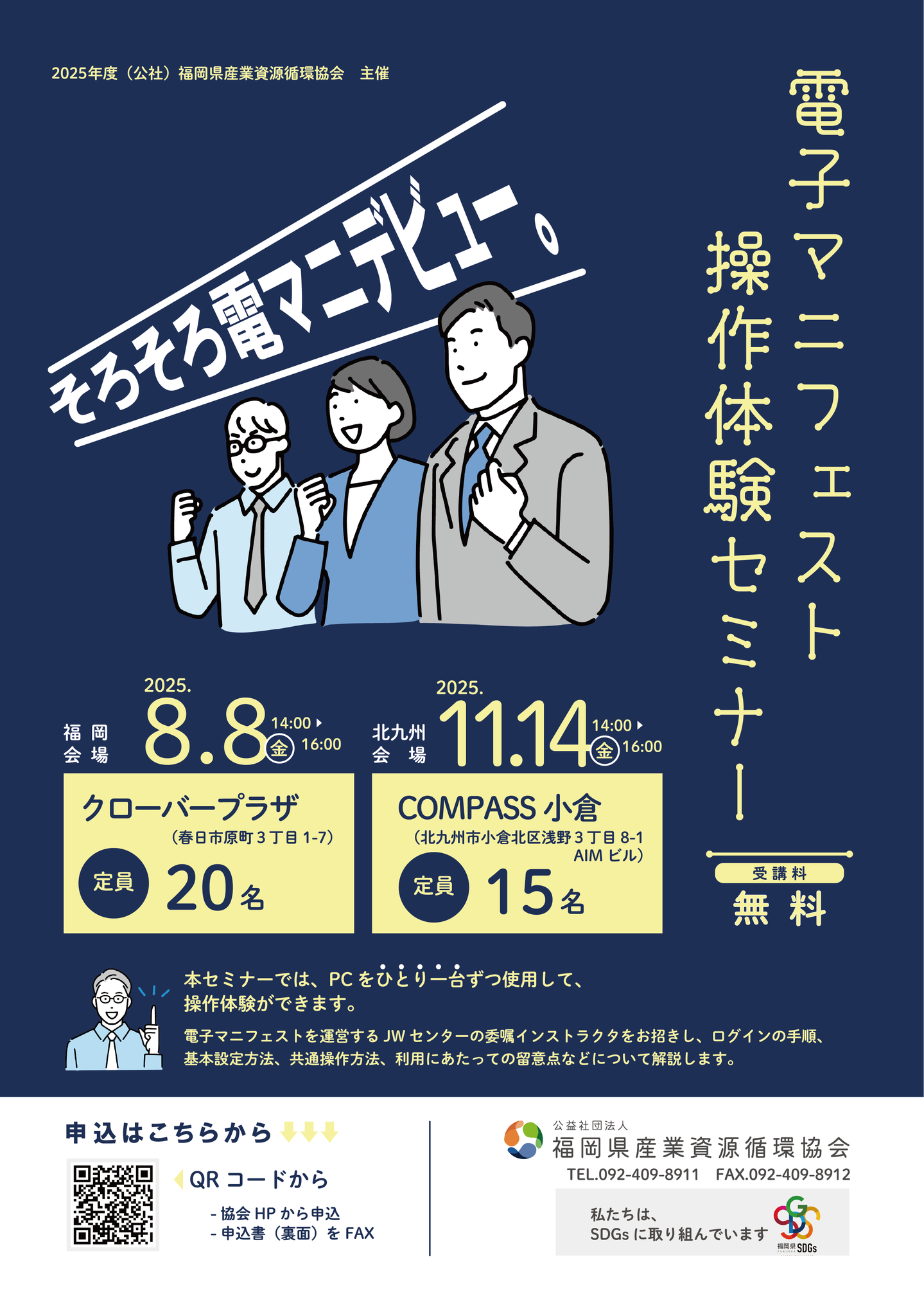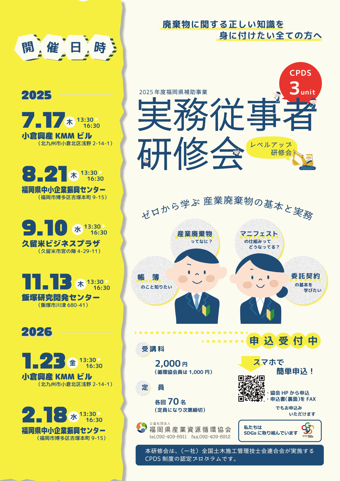 産業廃棄物の適正処理や資源循環による循環型社会の構築、地球環境の保全に関する環境分野の見識や知識の向上、廃棄物処理法及び関係法令の知識の向上、委託契約書・マニフェスト・帳簿等の知識や技能の向上及び活用の推進、労働安全衛生活動の推進等を目的とした講習会・研修会を開催しています。